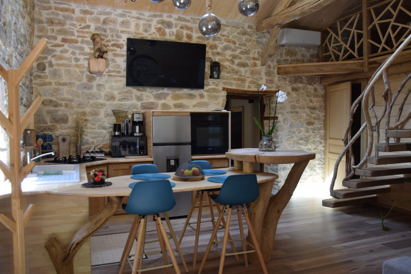 This former 13th century mill has been transformed into a gîte made of stone and wood. The rustic aspect of the raw wood combines with the modernity of the driftwood and invites nature inside. A large wooded park allows you to relax and enjoy the gentle sound of the water, which is omnipresent on the property.